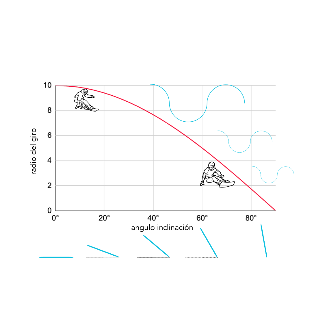 Si te fijas, las tablas de snow no son rectas. En los lados tienen dibujados unos radios: en inglés sidecut radius.