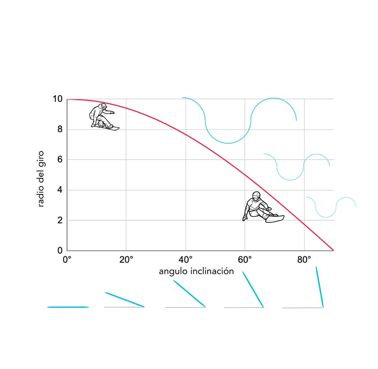 El radio de la tabla es solo un punto de partida. El radio real es dinámico y se controla principalmente con la inclinación.